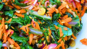 This salad is often found in natural food store deli cases at upwards of $7 a pound. In reality, it is a cheap, quick and easy recipe to make at home. The secret is massaging the kale (read more here) which breaks down the fibers and makes the otherwise tough veggie edible without cooking. Enjoy this healthy salad at picnics and on other summertime occasions.