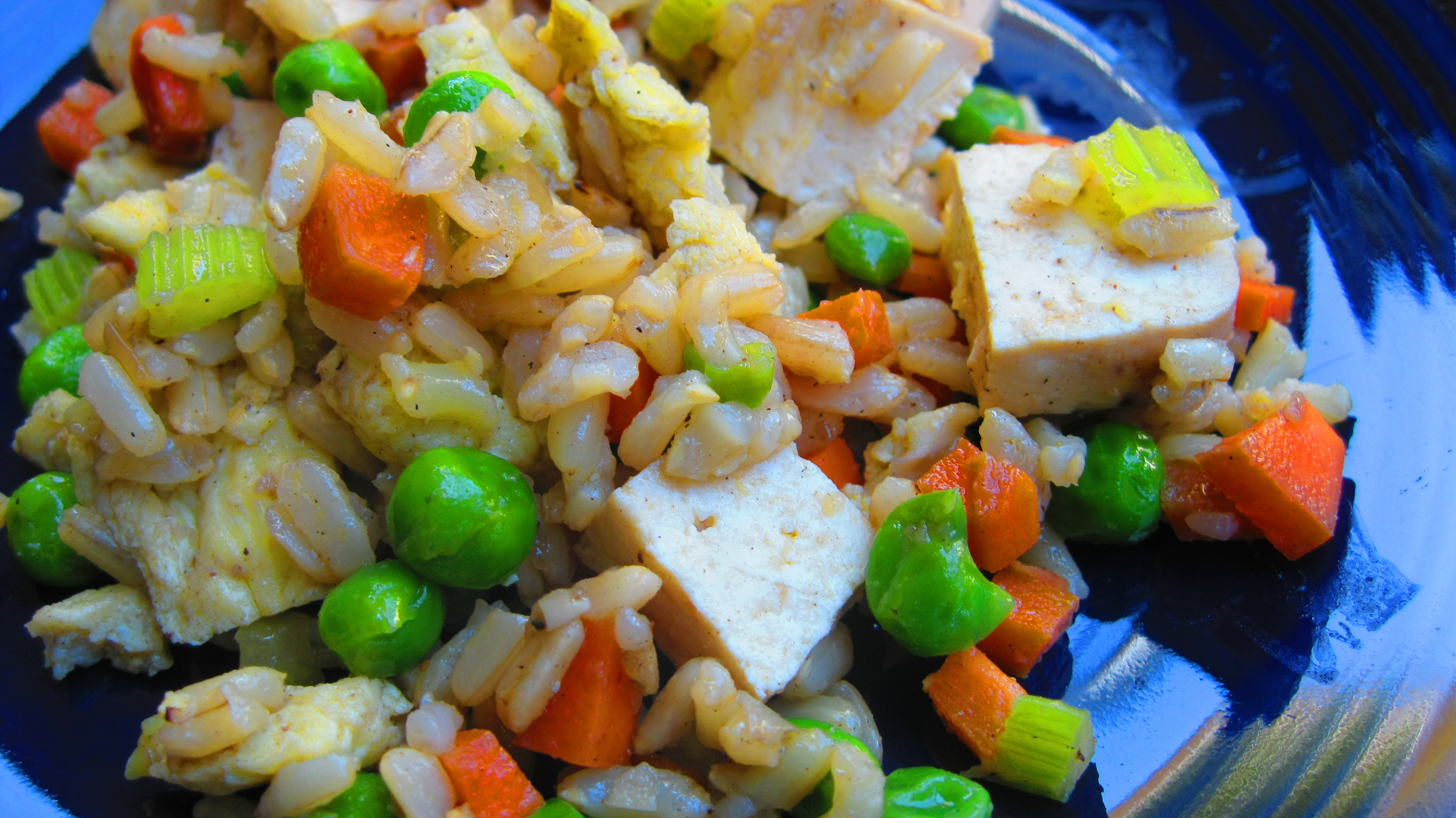 Tags: carrots, celery, garlic, ginger, honey, peas, rice, tofu
